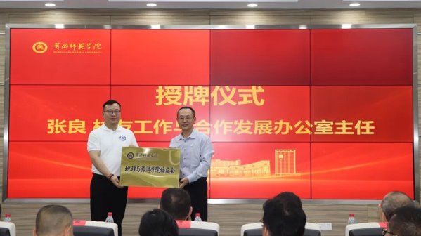 校友工作与合作发展办公室主任张良为地理与旅游学院校友分会授牌。