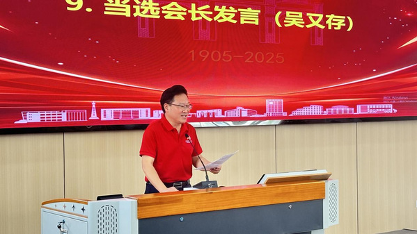 新当选的马克思主义学院校友分会会长吴又存在讲话中代表校友分会向母校的领导和恩师表示衷心感谢,向从四面八方远道而来的校友表示热烈欢迎,对母校的发展成就和进步感到欣慰和自豪!他深感母校培育之恩,他表示,作为新当选的分会会长,将继承“厚德、博学、力行、致远”的黄师校训,恪尽职守,团结理事会成员,发挥桥梁纽带作用,全力搭建校友交流平台,凝聚力量,助力母校发展,共同传承红色基因,培育时代新人。