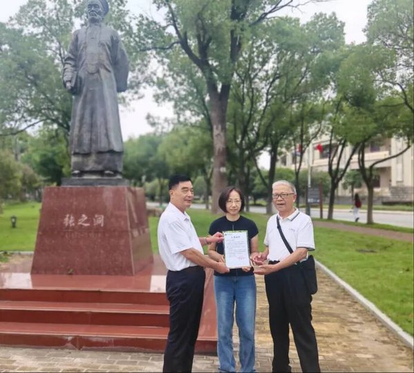 双甲子风华传薪火,七七级深情系母校。在黄冈师范学院120周年华诞到来之际,我校文学院(苏东坡书院)中文77级的校友们共同发起并集体出资,在母校认养一棵象征坚韧、成长与希望的香樟树。9月29日上午,一场简朴而又充满温情的树木认养仪式在张之洞铜像旁的“黄师林”举行。出席仪式的有文学院(苏东坡书院)党委书记肖亚军,校友工作与合作发展办公室副主任许春妮,文学院(苏东坡书院)党委副书记王艳艳、胡书义教授以及77级校友代表。