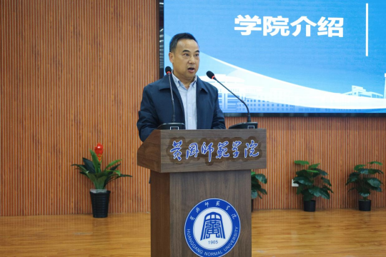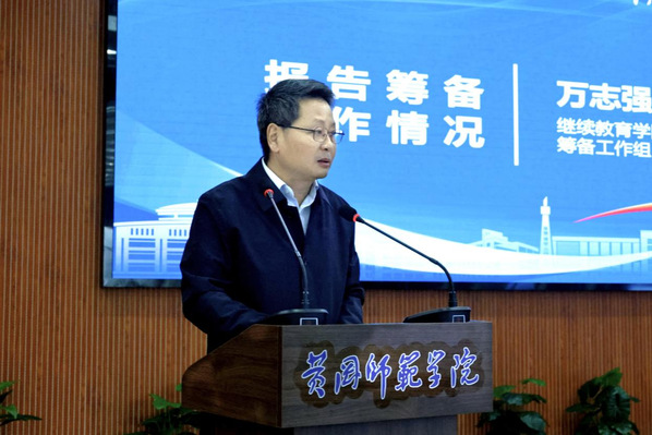 继续教育学院院长吴定雪向与会嘉宾和校友介绍了学院的发展历程与现状。他重点阐述了学院近年来“兴源固本、培元育新、铸魂育人”的发展路径:通过整体回迁西校区和进行硬件设施升级,再现黄师荣光;构建“成人学历教育、高等教育自学考试、职业能力教育、社会培训服务与职业技能等级认定”五位一体的多元化发展格局,并建成黄冈师范学院数字经济学院,推动新质继教稳步发展;坚持红色引领,将红色基因传承融入教育教学全过程,育人成果显著。他的介绍展现了学院丰硕的办学成果与未来的宏伟蓝图。