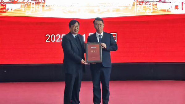 校党委副书记王基家为戴申辉校友颁发捐赠证书,一纸荣誉定格了这份双向奔赴的情谊。